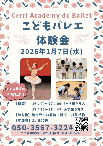 1月7日(水)こどもバレエ体験会を行います♪